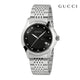 Quartz movement. Scratch resistant synthetic sapphire crystal. Stainless steel case back. Case diameter: 38 mm. Case thickness: 13 mm. Hidden deployment clasp. Water resistant at 30 meters / 100 feet. Functions: hours, minutes, seconds, date. Luxury Dress watch style. Gucci Classic Men’s Watch YA126404.